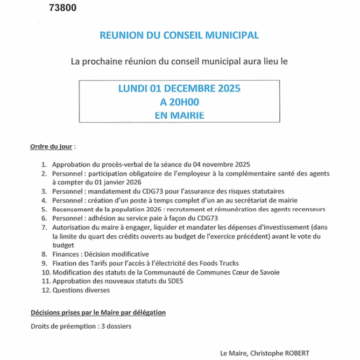 Réunion conseil municipal du 18 Décembre 2025