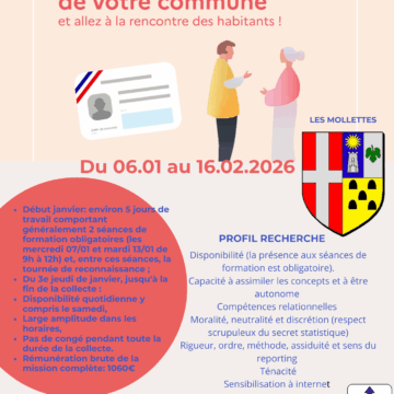 📢 La commune des Mollettes recrute deux agents recenseurs pour le Recensement de la Population 2026 !