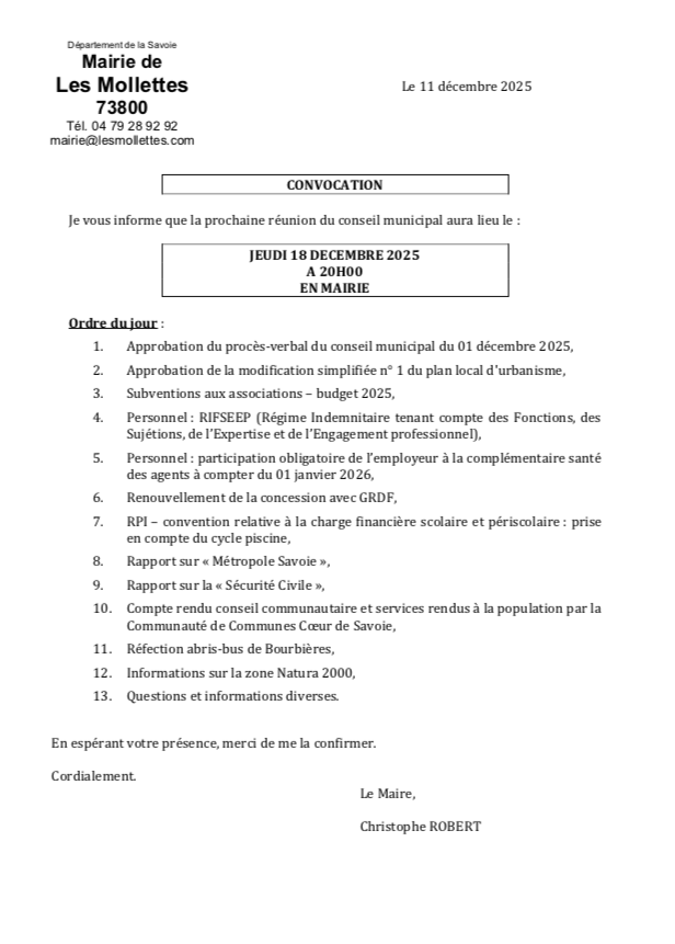 Réunion conseil municipal du 18 Décembre 2025